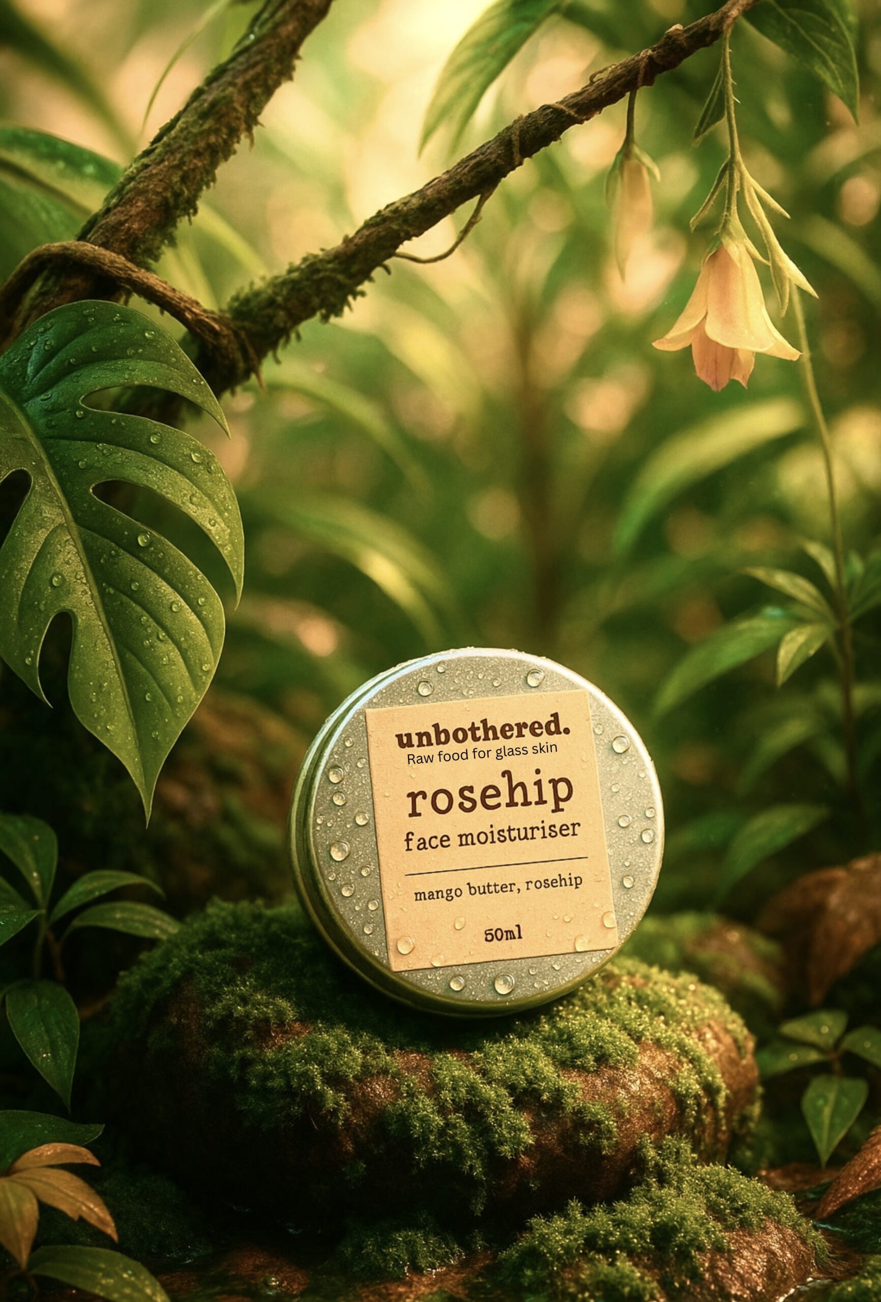 This luxurious face moisturizer combines the collagen-boosting magic of rosehip oil with the calming power of sandalwood. Together, they reduce pigmentation, smooth fine lines, and restore your skin’s natural glow. A daily ritual of skin renewal, this potion is rich in vitamins A & C, making it perfect for tired, uneven, or aging skin.