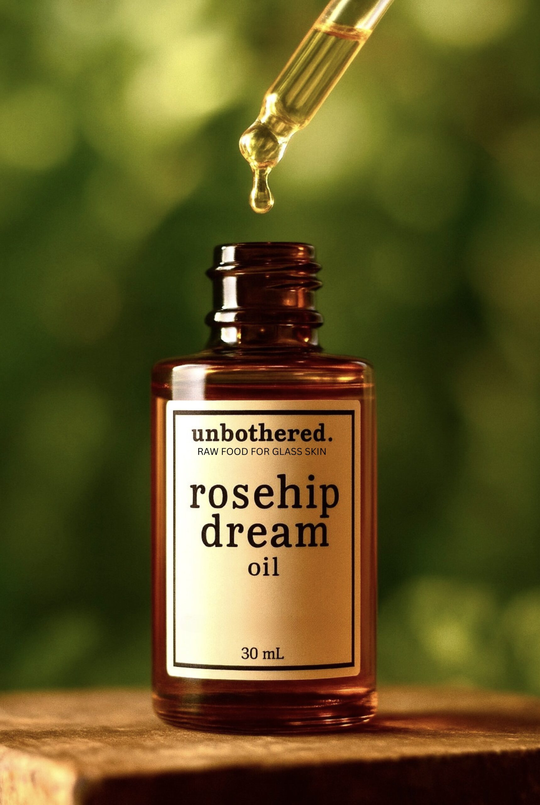 The antioxidants in Rosehip oil can help to protect the skin against environmental stressors, such as pollution & UV damage. It’s helps to soothe & calm irritated skin. Reduces the appearance of pores & promoting cell turnover. Cold-pressed from wild rose seeds, this elixir is weightless yet deeply transformative. It smooths fine lines, reduces scars, and restores glow with every drop. The scent is softly nutty and herbal—an earthy bouquet of renewal. Your skin drinks it in, and it glows from within.